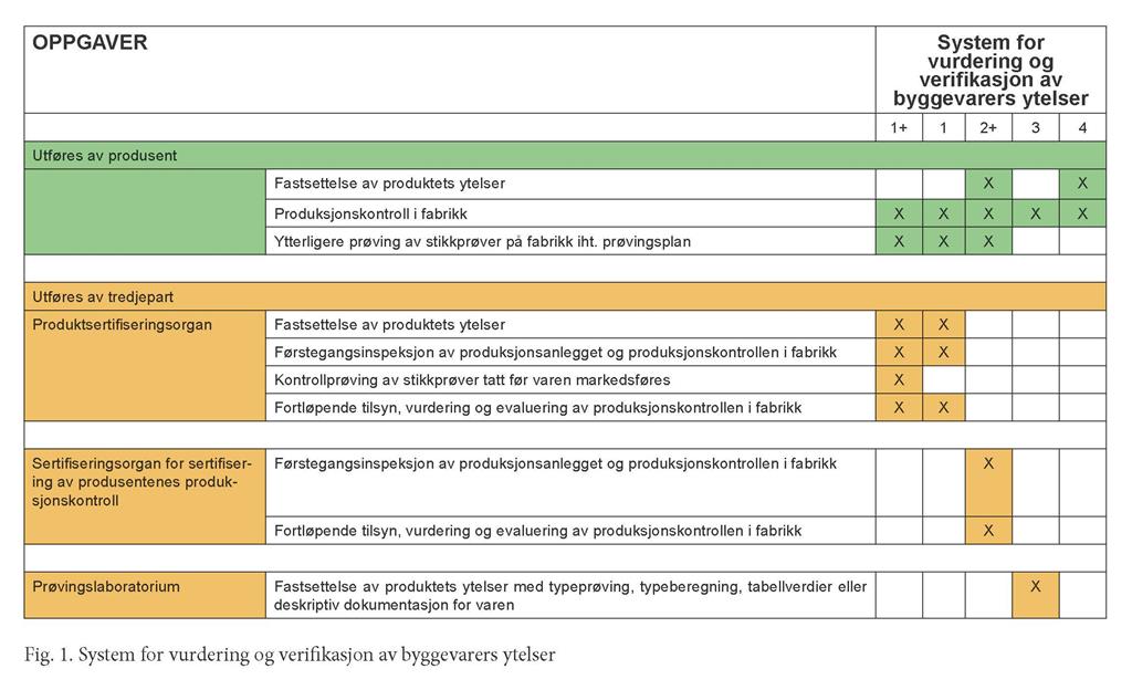 Systemer for vurdering og verifikasjon av byggevarers ytelser